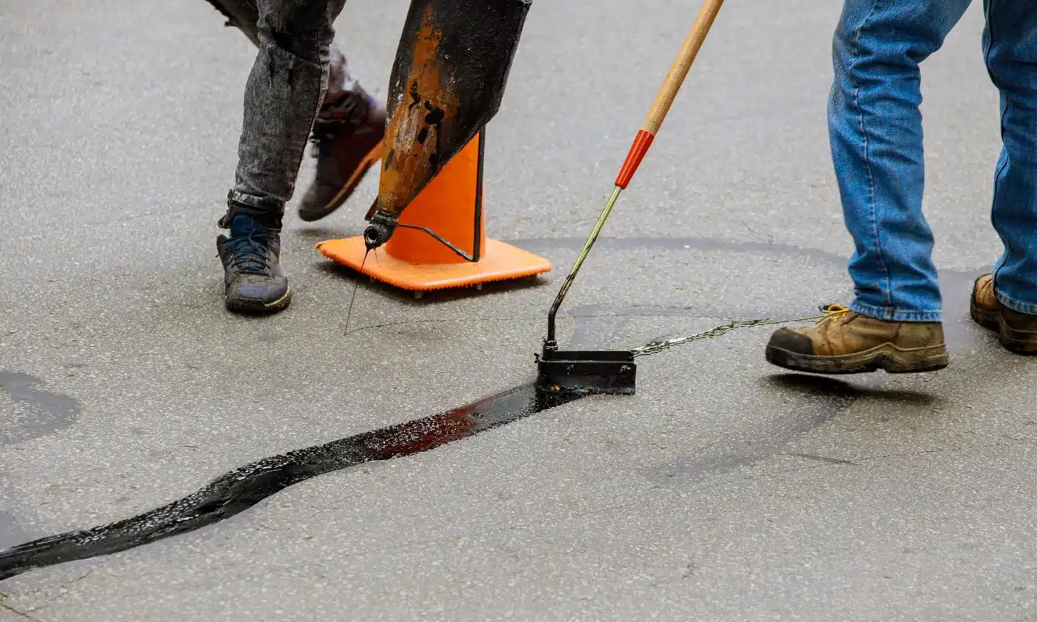 Crack sealing uses hot-applied, flexible rubber that moves with the pavement. Crack filling is cold and temporary — it’s not meant to last.